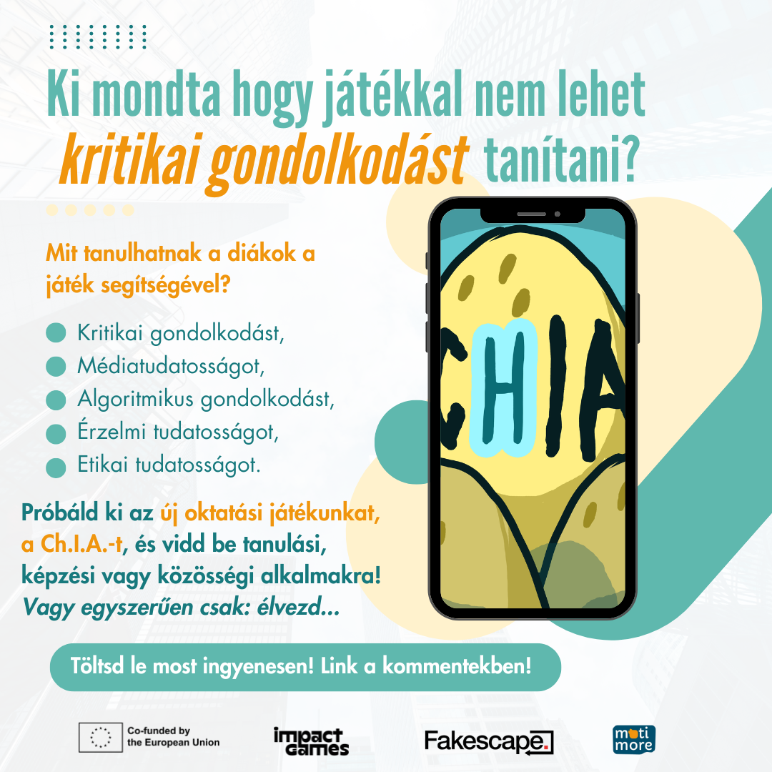 This challenge is addressed by the Chicken Intelligence Agency (Ch.I.A.), an educational digital game developed within the framework of our latest Erasmus+ project through international cooperation (available in English, Hungarian, Slovak, and Czech). The aim of the project was to develop an innovative learning tool that supports the development of critical thinking, media literacy, and algorithmic awareness in a playful yet thought-provoking way.